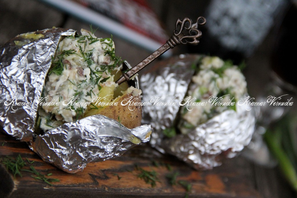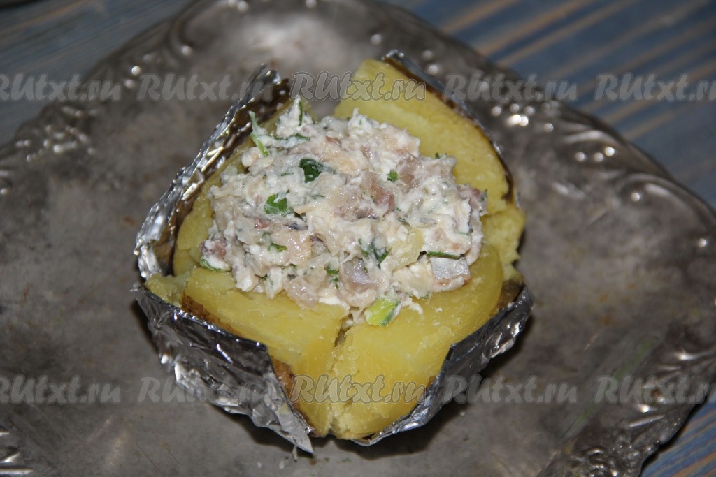 Каждую запеченную картофелину разрезать крест-накрест, не дорезая до конца.