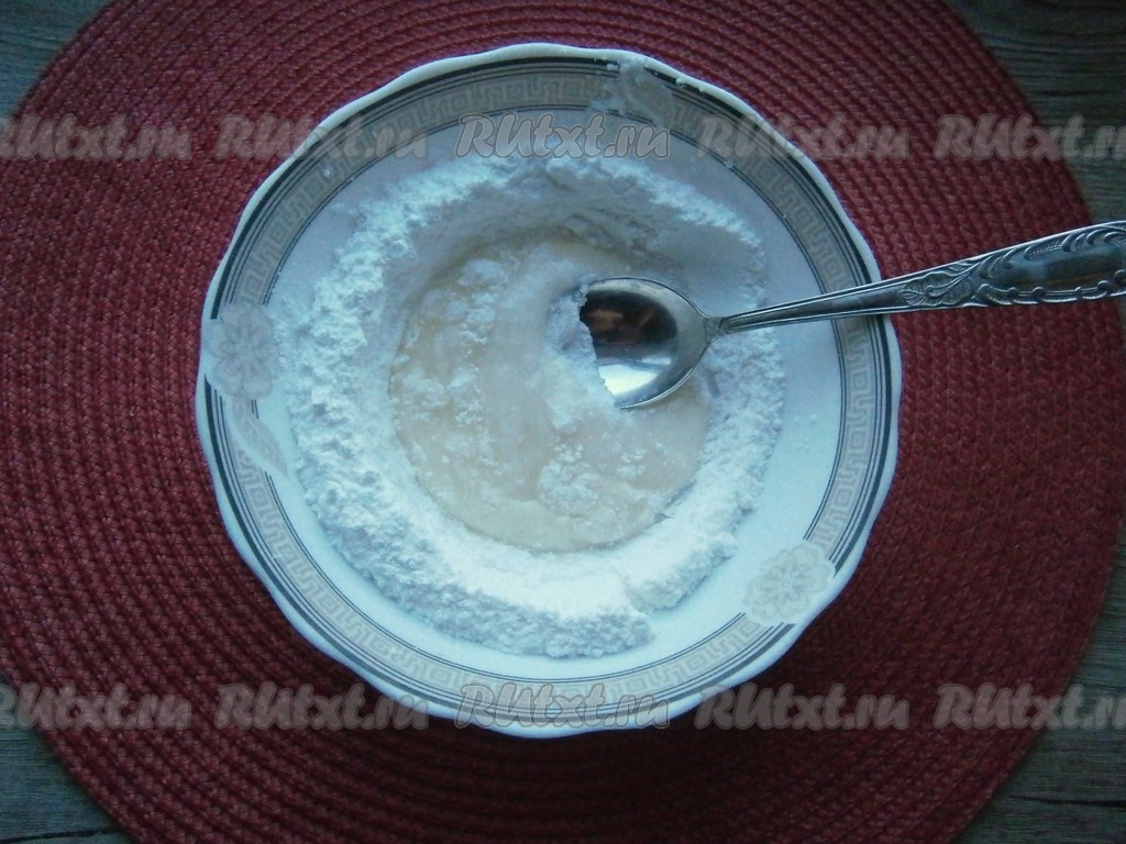 Ложкой смешать белок с пудрой и лимонным соком, как замешиваете тесто.