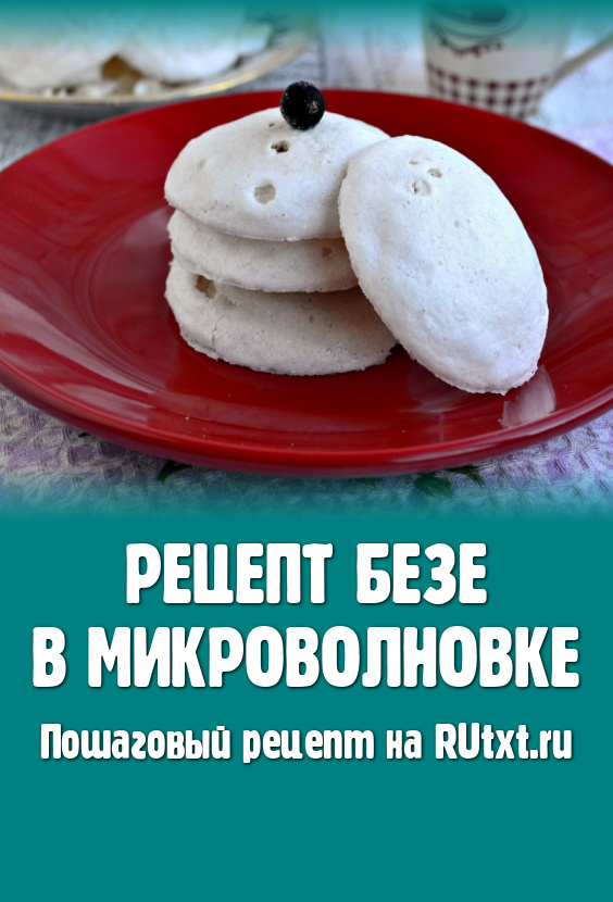 Хотите полакомиться замечательным десертом за считанные секунды, тогда приготовьте безе в микроволновке. Конечно, вкус, вид и структура этого лакомства немного отличаются от безе, испеченного в духовке, но это - экспресс-рецепт. Такие безе можно быстро испечь в СВЧ для украшения или приготовления торта, пирожных, а также просто к чашечке кофе или чая. Время приготовления нужно обязательно высчитать самим, попробовав испечь пару штук безе, так как даже при одной мощности микроволновок время приготовления существенно различается. Из данного количества продуктов получится около 17-20 безе среднего размера.