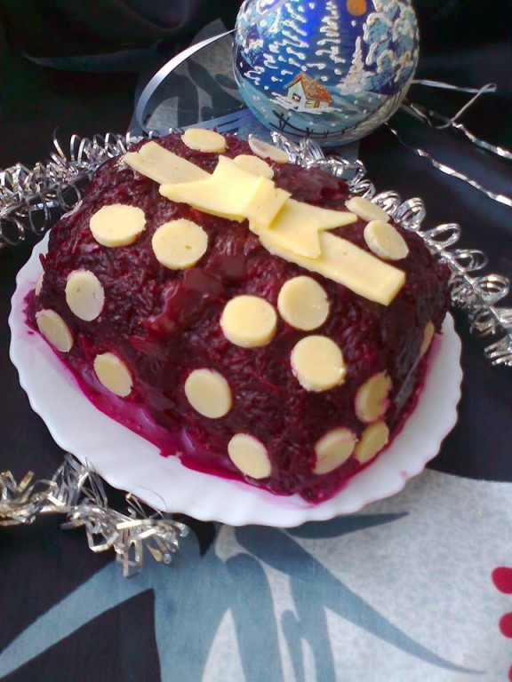 Салат "Подарочек", оформленный в виде подарка, прекрасно подойдет к праздничному столу. Если Вы и Ваши гости любите салаты со свеклой, то этот салат для Вас. Салат очень простой, нарядный и вкусный.