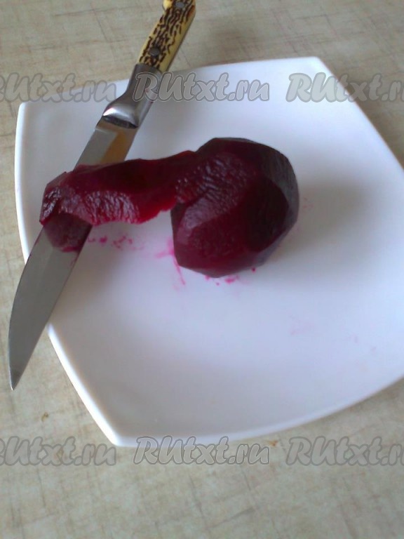 Свеклу (у меня было 5 штук среднего размера) отвариваем, очищаем от кожуры.