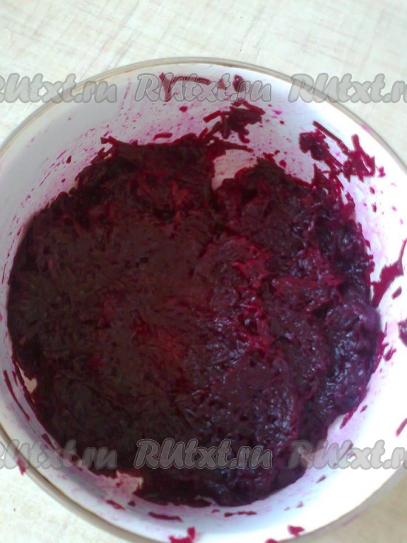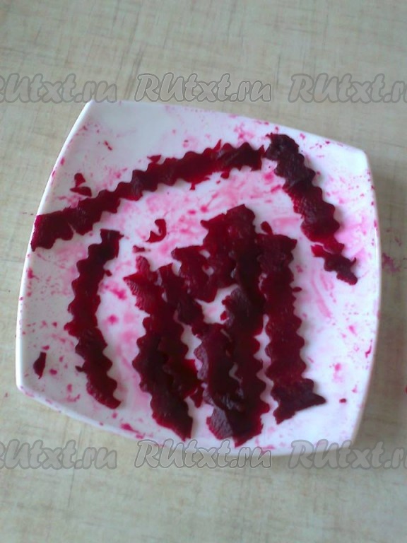 2 свеклы натерла на средней терке для украшения верха и боков салата. Можно также натереть на крупной терке.