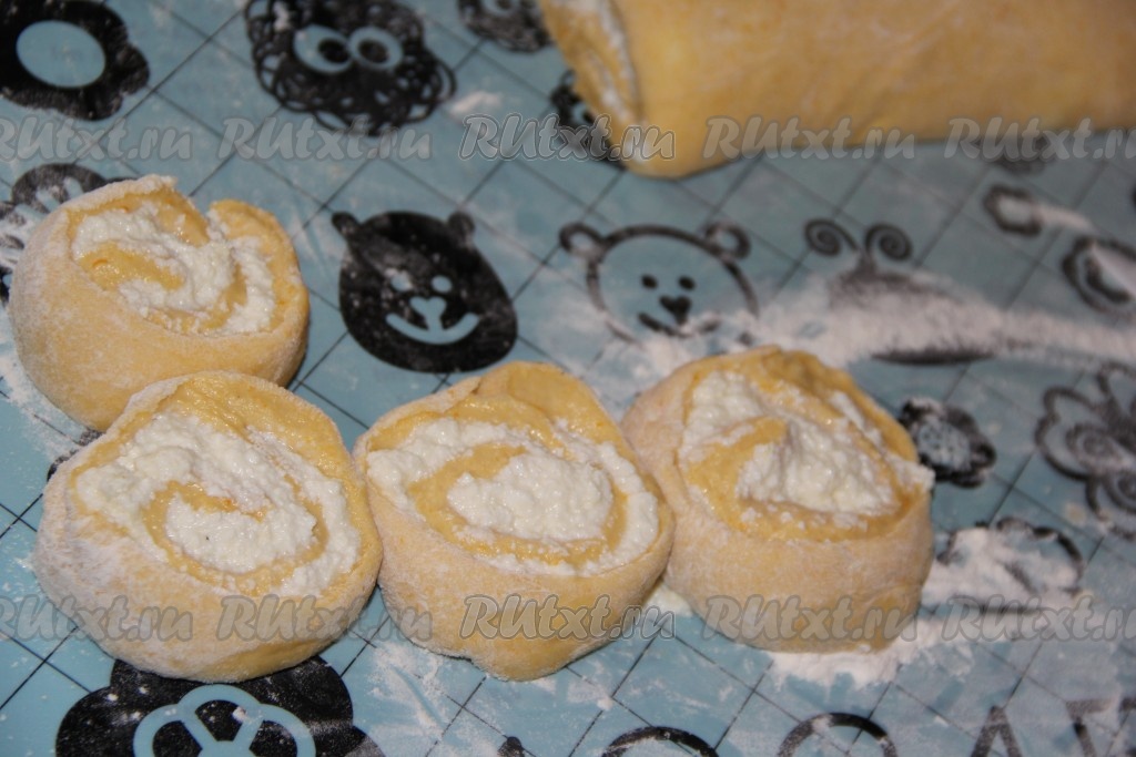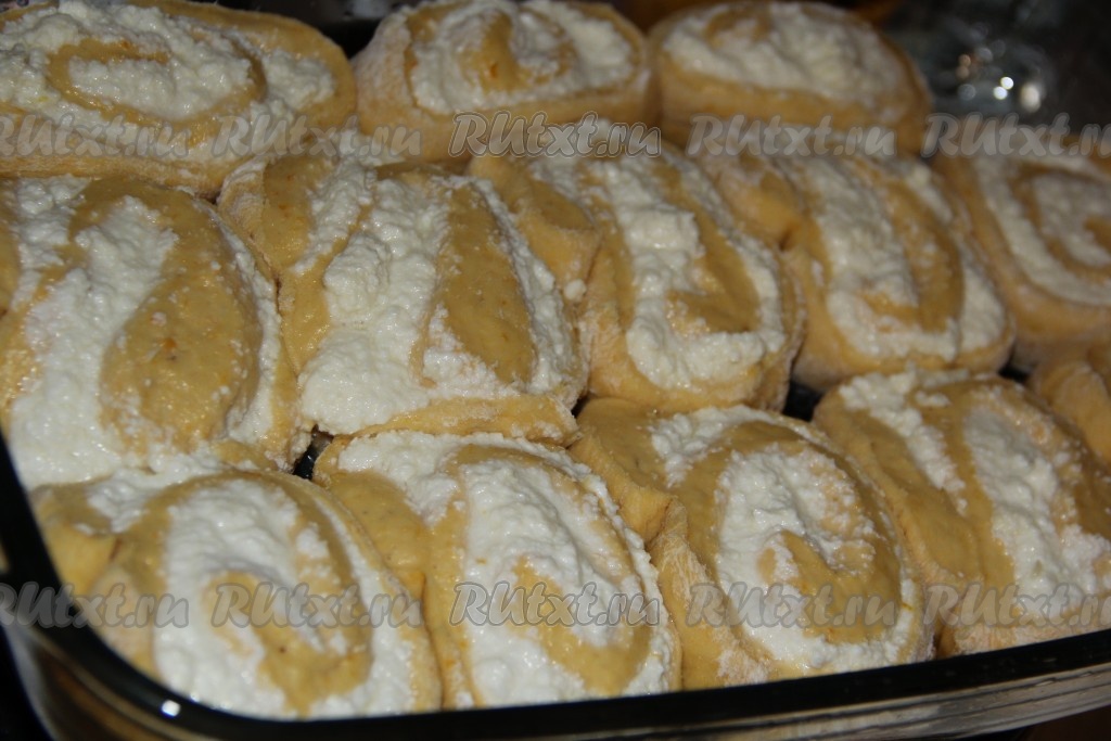 Оставить булочки в форме для расстойки на 1 час. Тыквенные булочки с творогом увеличатся в объёме.