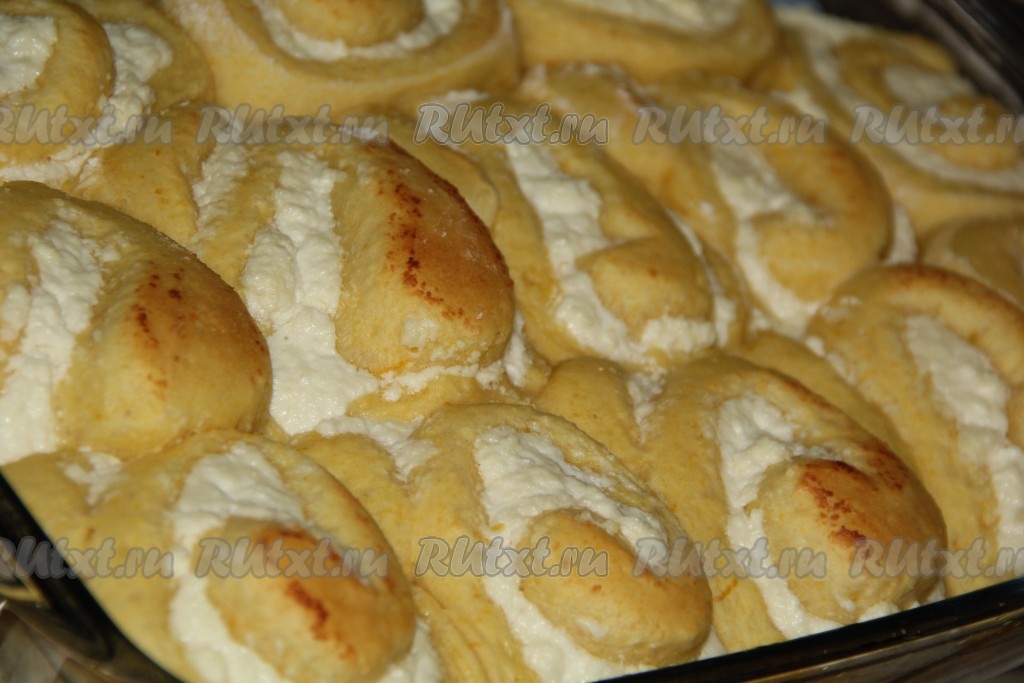 Тыквенные булочки с творогом, приготовленные со сметанной заливкой, получились очень вкусными, нежными и просто тающими во рту.