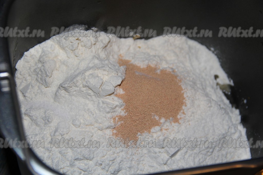 Затем всыпать муку, соль, дрожжи и, закрыв крышку хлебопечки, на 1,5 часа выставить режим "Замес теста".