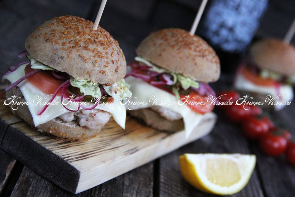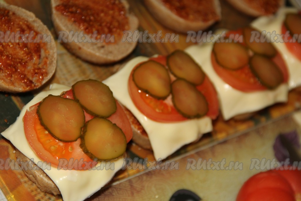 Накрыть начинку второй половинкой булочки. Можно проткнуть бургер деревянной шпажкой, чтобы лучше держал форму. Вот такой аппетитный и очень вкусный бургер с ржаной булочкой можно приготовить в домашних условиях.