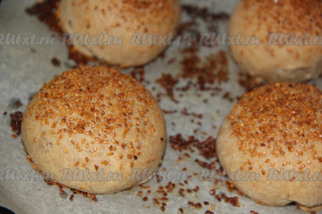 Выпекать ржаные булочки для бургеров в разогретой духовке при температуре 200 градусов, примерно, 25 минут.