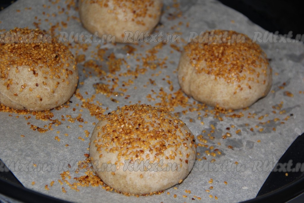 Перед выпеканием смазать булочки водой и посыпать кунжутом (или маком).