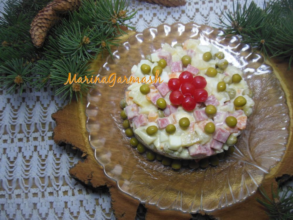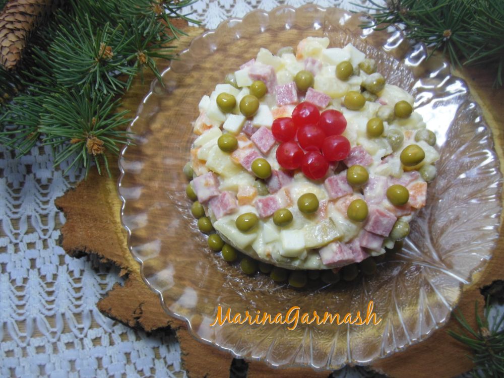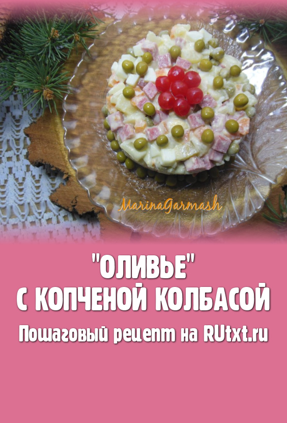 "Оливье" - праздничный салат, который когда-то придумал повар-француз Люсьен Оливье. Свой рецепт он хранил в тайне. Лишь после его смерти секретный рецепт повара был раскрыт. Прошел не один десяток лет, состав настоящего "Оливье" был изменен. Появилось немало рецептов этого блюда, но неизменным остаётся лишь одно - салат по-прежнему любим во многих семьях. Сегодня предлагаю новый неклассический вариант салата, в котором вареная колбаса заменена на копченую. Поверьте, вкус будет совершенно другим! Давайте вместе приготовим наивкуснейший салат "Оливье" с копченой колбасой.