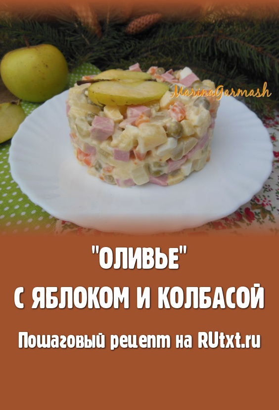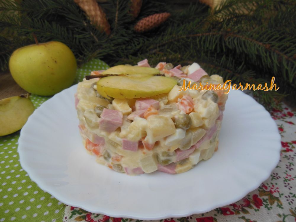 Предлагаю вашему вниманию рецепт "Оливье" с яблоком и колбасой. Благодаря добавлению яблочка, этот салат становится невероятно вкусным, ароматным и нежным. После выхода в свет знаменитого фильма "Служебный роман" многие хозяйки, в том числе и моя мама, стали готовить этот популярный салатик именно по этому рецепту. Рекомендую и вам попробовать!