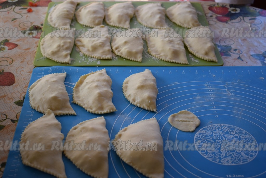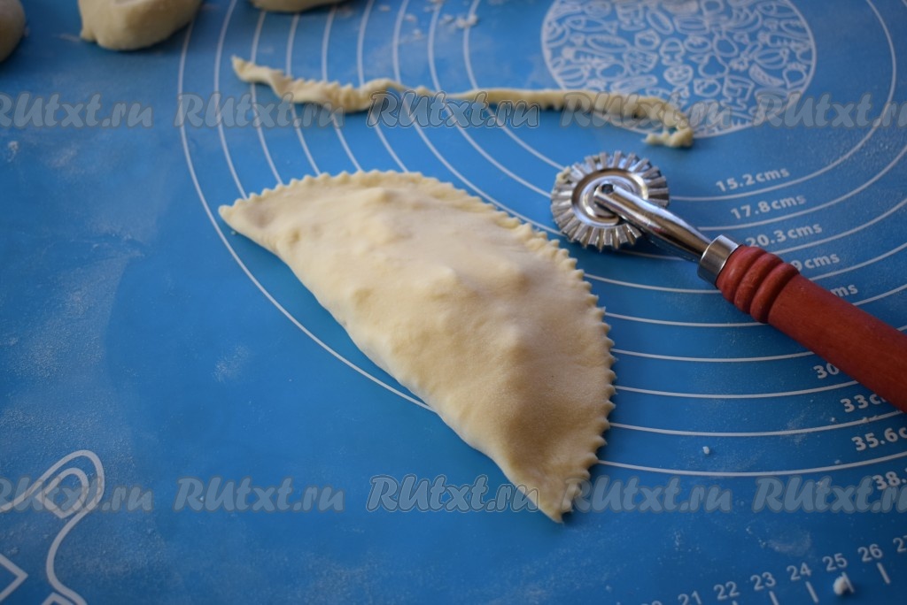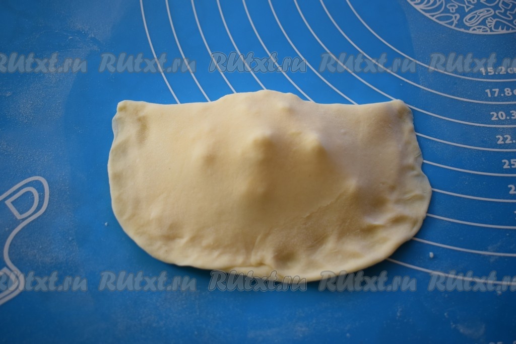 Начинку накрываем второй половиной теста, хорошо скрепляя пальцами края.