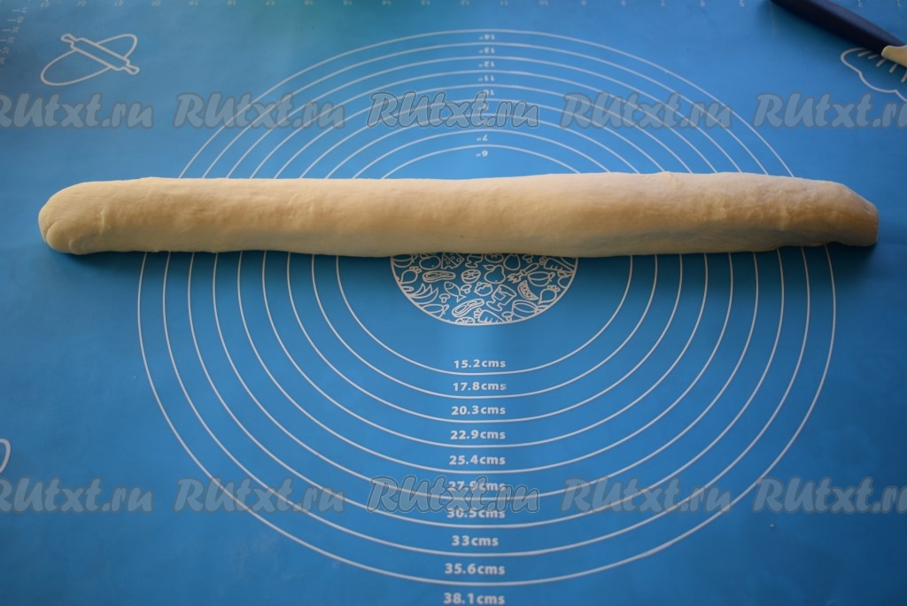 Отлежавшееся тесто вымешиваем и скатываем из него жгутик.
