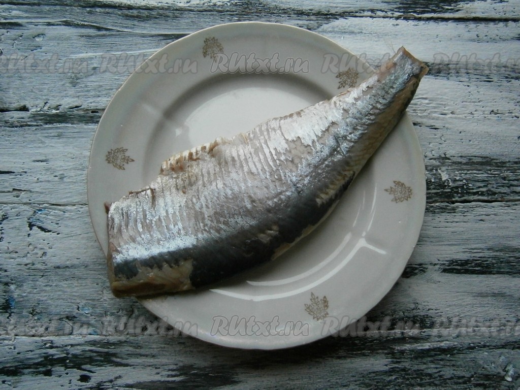 Отварить картофель в кожуре до готовности (в течение минут 25 с момента закипания воды), затем дать остыть. Филе сельди внимательно проверить на наличие мелких косточек, если они есть - убрать.