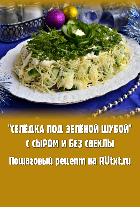 Хочу предложить вам приготовить к праздничному столу салат "Селёдка под зелёной шубой". Этот новый салатик совершенно отличается по вкусу от традиционного варианта, но этим он и интересен. Салат получается необычным, но очень вкусным. Готовится он с добавлением сыра без использования свеклы. Селёдку выбирайте жирненькую и слабосолёную, тогда и салат у вас будет идеальным по вкусу.