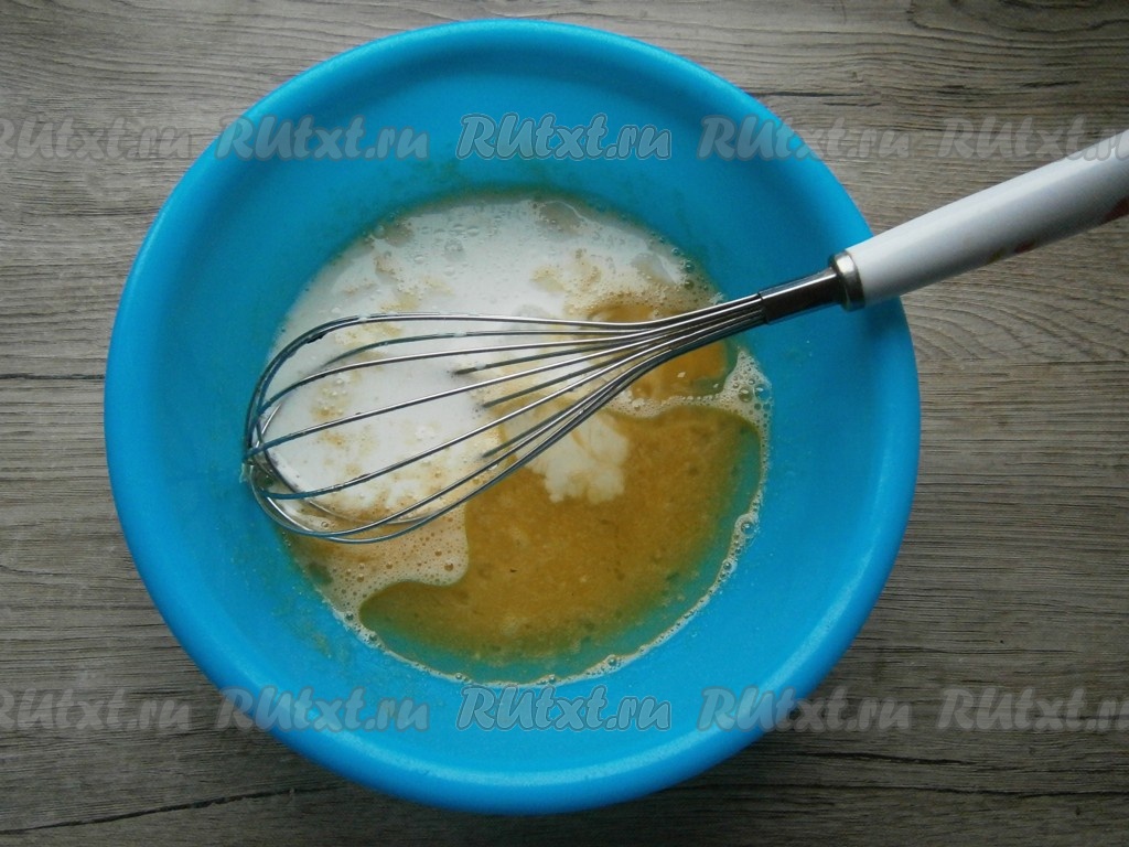 Замесить венчиком тесто, которое должно быть похоже на сметану средней густоты.