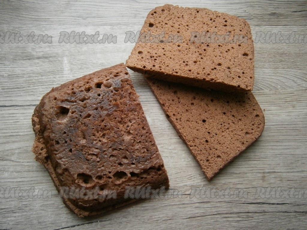 Далее вы можете разрезать шоколадный корж на 2 части в длину или, как сделала я, - на 4 части.