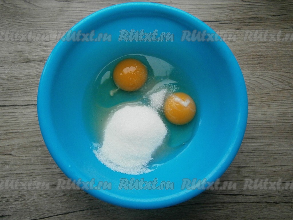 Расколотить яйца венчиком, влить молоко и растительное масло.