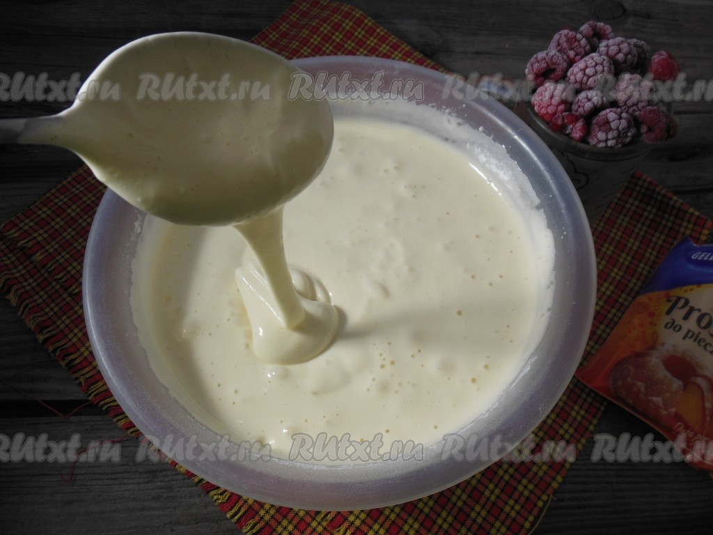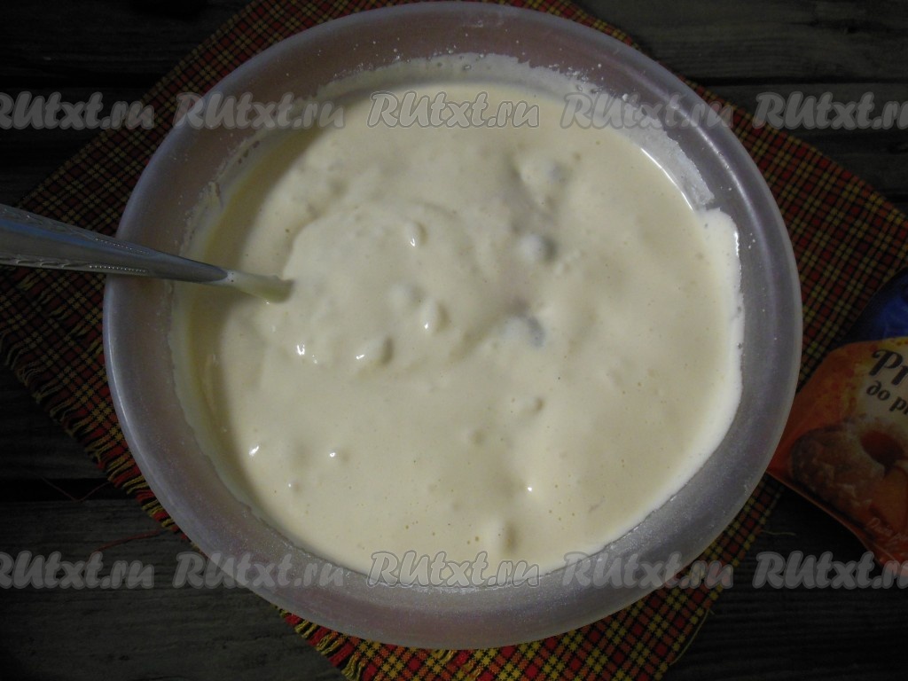 Тесто получится нежным, похожим на сметану средней густоты, оно будет стекать с ложки достаточно плавно (как на фото).