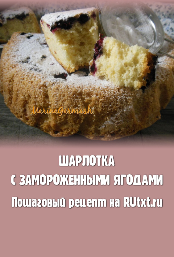 Полностью остывший пирог, по желанию, посыпьте сахарной пудрой. Шарлотка, приготовленная с замороженными ягодами, получается нежной, в меру сладкой и очень вкусной, подавайте ее к кофе или чаю.