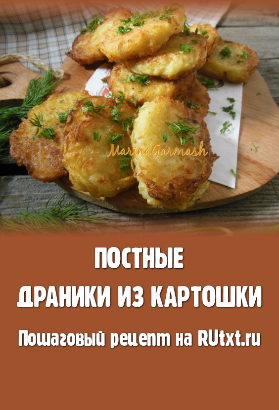 Драники - одно из самых известных блюд белорусской кухни, они представляют собой подобие оладий, которые готовят из тертого картофеля. Рецептов этого блюда немало и каждый интересен по своему. Предлагаю приготовить вам аппетитные, вкусные постные драники из картошки. В состав блюда не входят сметана и яйца. Поэтому их смело можно кушать и в Пост, и людям, у которых есть аллергия на яйца. Готовится блюдо просто и быстро, из самых доступных ингредиентов. Такие картофельные драники понравятся многим, попробуйте!