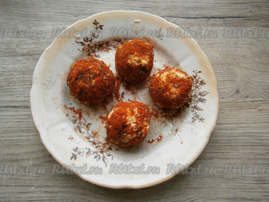Эти шарики обвалять в смеси паприки и сушеного базилика.