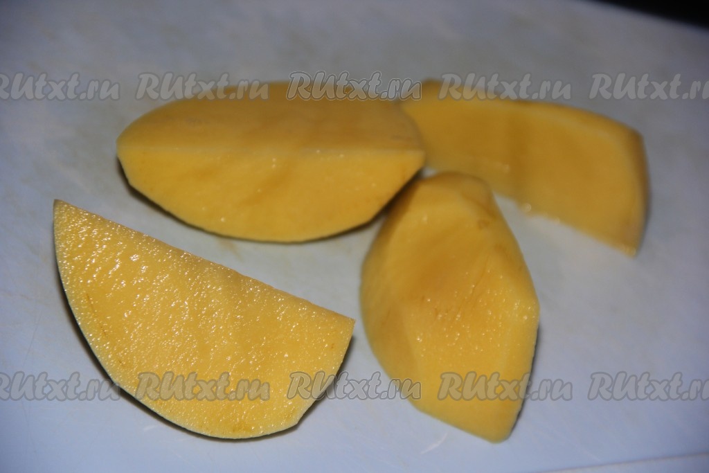 Картофель очистить. Одну картофелину разрезать на 4 части.