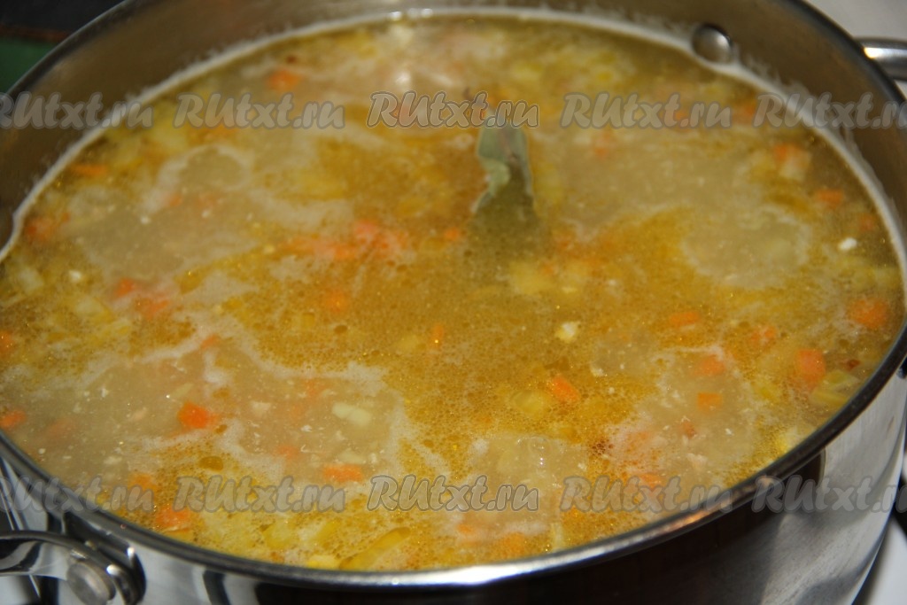Затем в суп с горбушей выложить обжаренные лук и морковь.