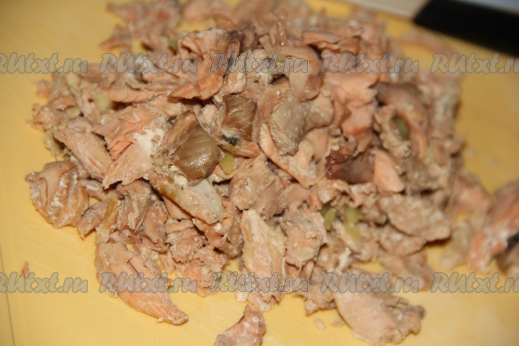 Пока наш картофель варится, отделить филе от костей и порвать на волокна.