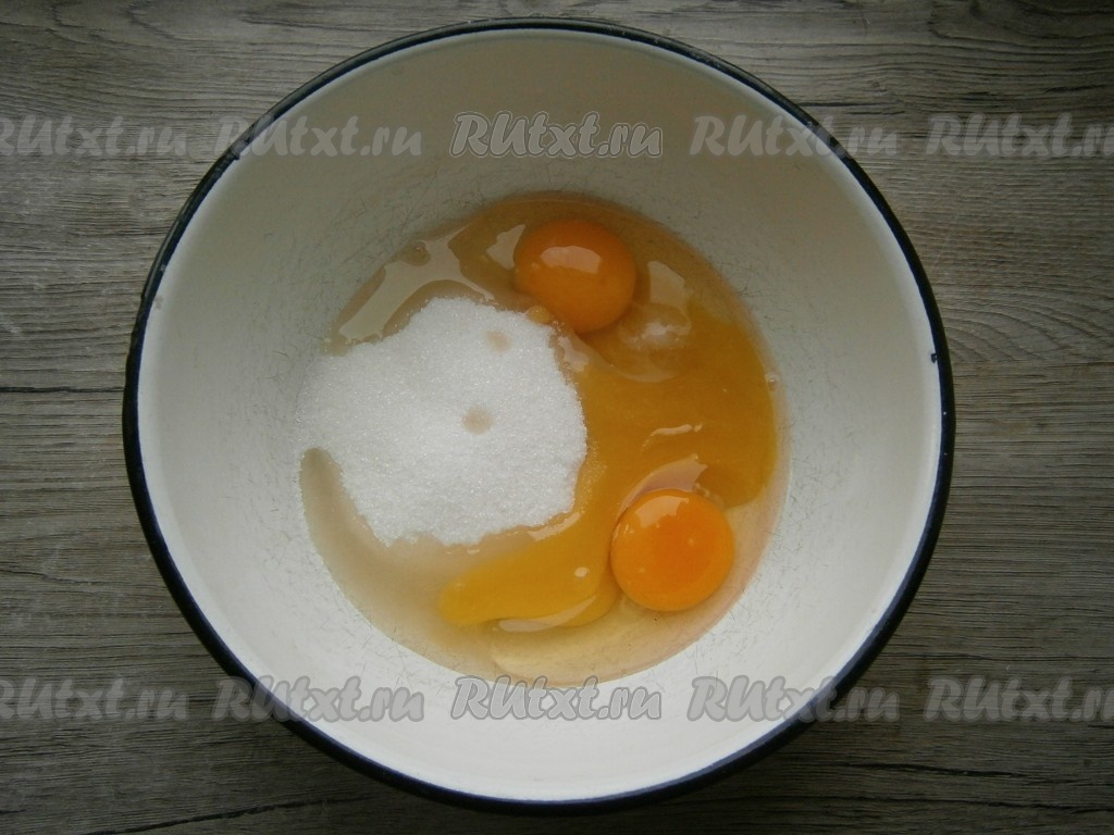 К яйцам добавить сахар, соль, мед и соду.
