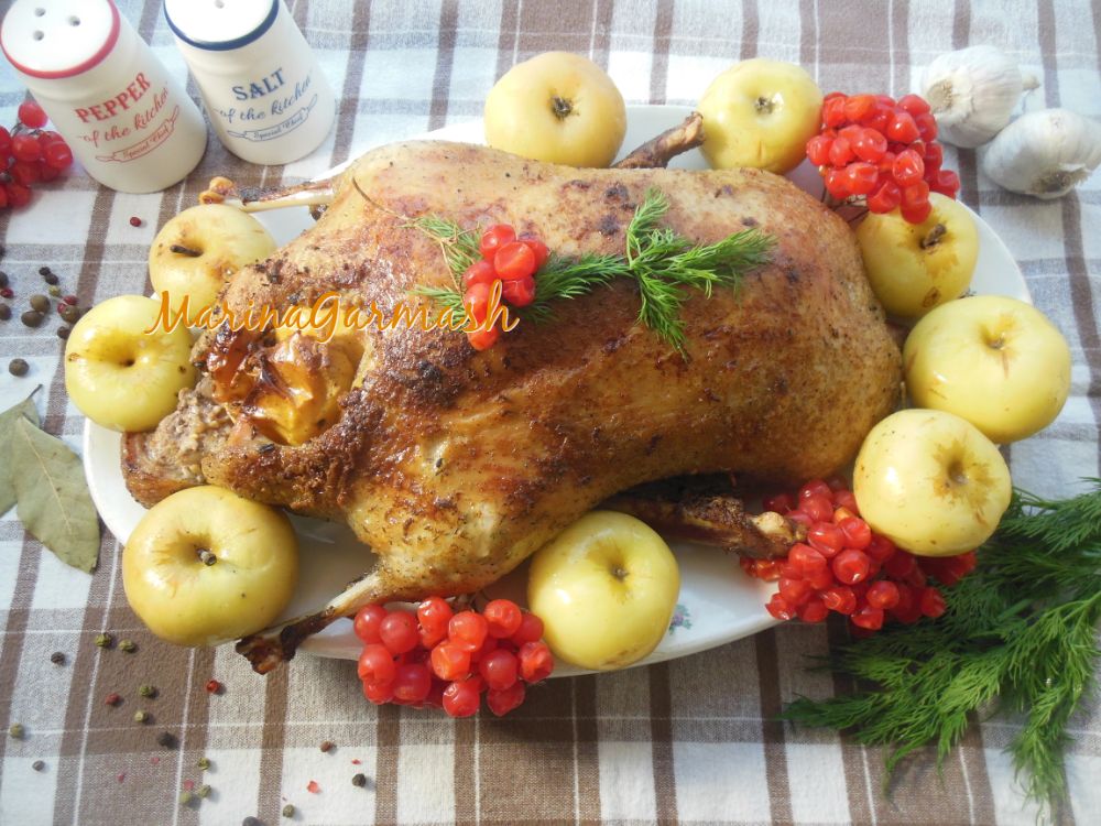 Утка, замаринованная и запеченная целиком в духовке по этому рецепту, станет украшением стола и в будни, и в праздники. Чаще всего утку запекают с яблоками, айвой, грибами, кашей, апельсинами, квашеной капустой, все эти добавки лишь придают мясу птицы особый вкус. А для того чтобы утка получилась не только вкусной, но и сочной, мягкой, есть несколько секретов, которыми я поделюсь. Самое главное - это правильно замариновать птицу в течение двух суток. Благодаря маринаду с уксусом, мясо утки получается мягким, сочным, а кожа становится менее жирной, тоненькой и аппетитной. Такой способ маринования подойдет и для домашней утки, и для дикой. Этим рецептом маринования птицы с нами поделился знакомый охотник, с тех пор (уже больше 10 лет) я пользуюсь этим секретом. Немаловажен и способ запекания. Чтобы мясо получилось нежным, мягким и сочным, утку необходимо запекать в рукаве (или же поливать птицу соком, образовавшимся в процессе запекания). Поверьте, такая утка украсит своим прекрасным видом и замечательным вкусом и повседневный, и праздничный стол. Давайте приготовим!