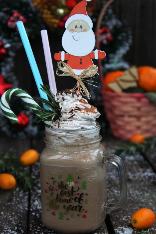 При желании, поверх наивкуснейшего коктейля можно нанести сливки из баллончика, вставить пару трубочек и карамельную трость. Вот такая красота получилась. Вкус этого шоколадно-молочного коктейля, приготовленного в домашних условиях, порадует ваших близких, попробуйте!