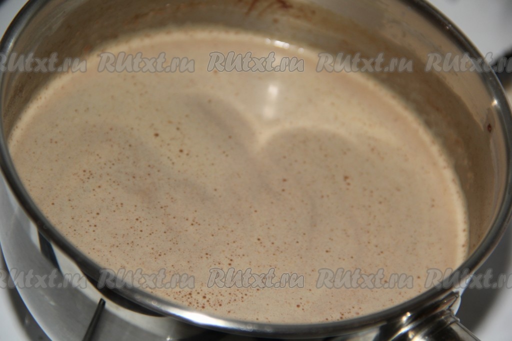 Довести массу до полного растворения кофе и шоколада (на это потребуется минут 5). Я непрерывно помешивала молоко. Снять сотейник с огня, остудить до комнатной температуры и поставить в холодильник до полного остывания (минут на 30, можно и на более длительное время).