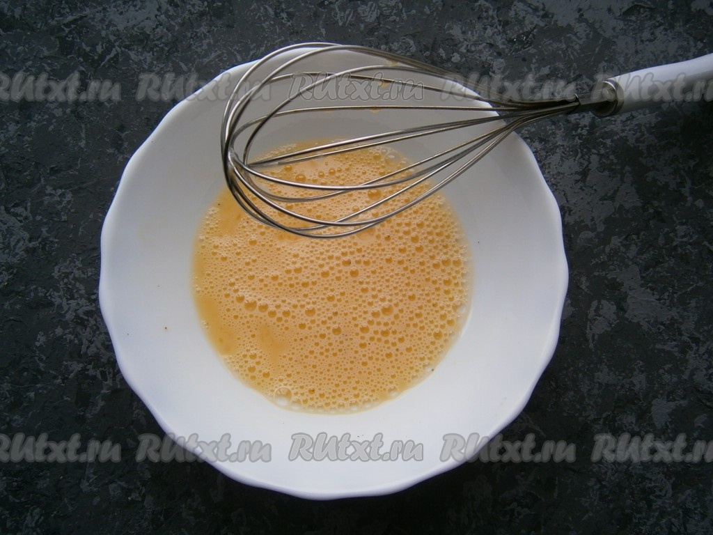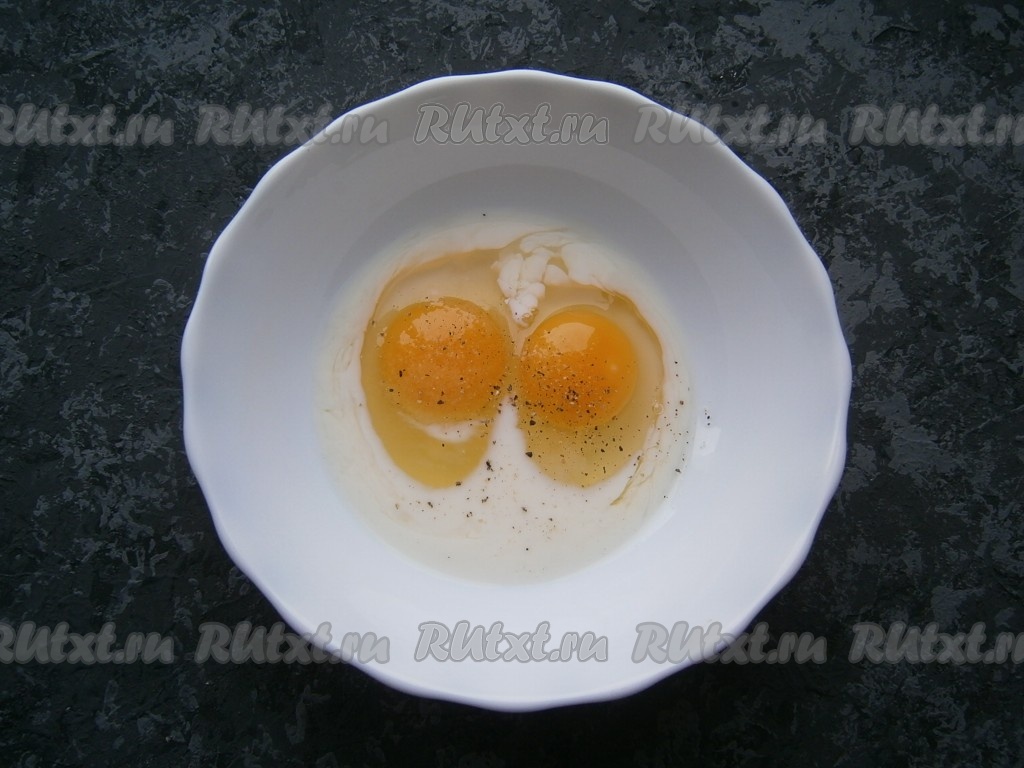 К яйцам добавить молоко, немного соли и чёрного молотого перца.