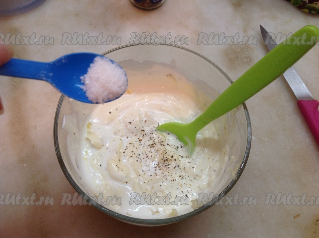 Солим сметанный соус и перемешиваем.