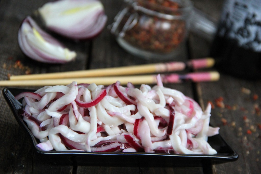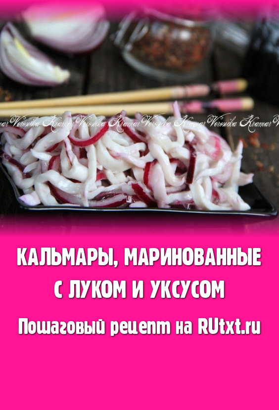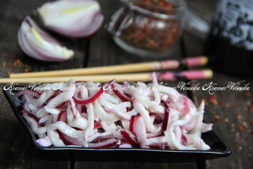 Рецепт приготовления кальмаров, маринованных с луком и уксусом, мне посоветовала свекровь. Готовится блюдо очень просто, его можно подать в роли холодной закуски к повседневному или праздничному столу. Кальмары получаются в меру острыми, очень мягкими и вкусными. Лук можно взять как белый, так и красный. Приготовьте этот пикантный салат и вы ещё не раз вернётесь к этому рецепту!