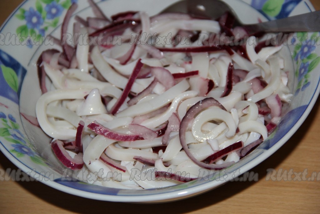 Кальмары, маринованные с луком и уксусом, получаются нежными, в меру остренькими и очень вкусными. Такой пикантный, аппетитный салат, наверняка, понравится многим!