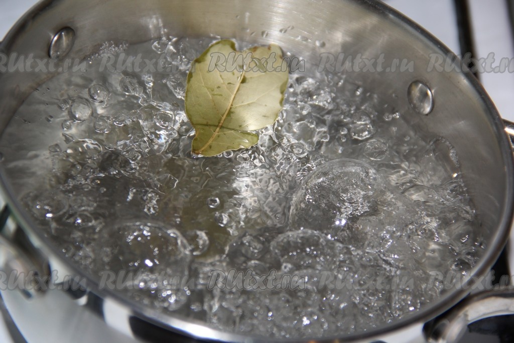 Вскипятить воду и добавить 1-2 лавровых листа.