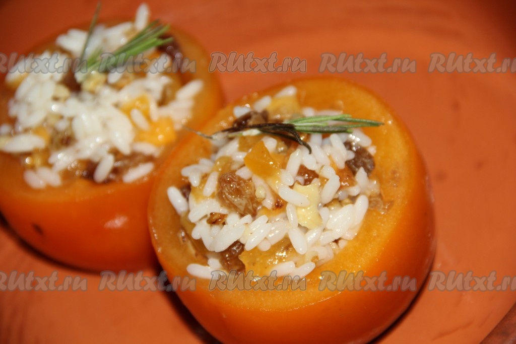 Этот рецепт приготовления фаршированной хурмы, запечённой в духовке, увидела в Интернете. Хурму в моей семье любят в любом виде, поэтому решила приготовить этот десерт. Запечённая хурма, фаршированная рисом, изюмом и орехами, получилась восхитительно вкусной, аппетитной и достаточно сытной. От такого десерта не откажутся ни взрослые, ни дети, обязательно попробуйте!