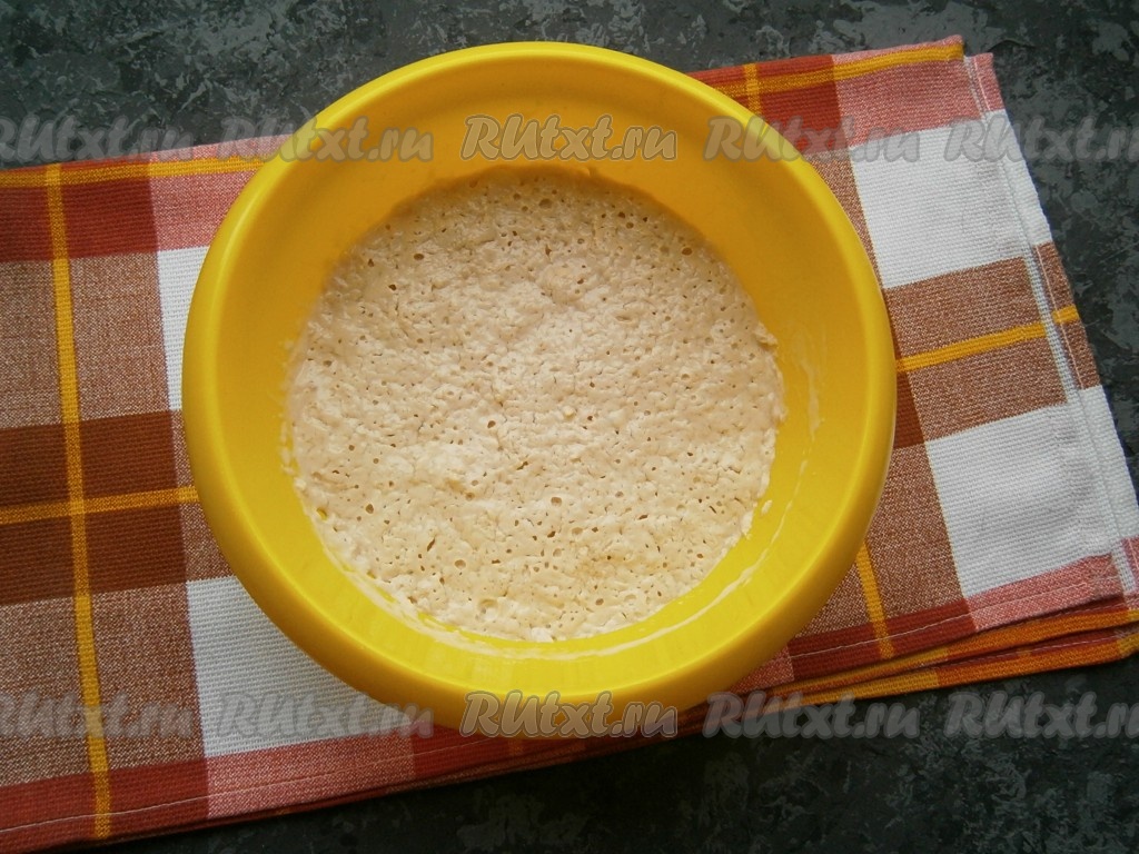 По прошествии 20 минут пенная "шапочка", образовавшая на поверхности опары, будет свидетельством тому, что дрожжи начали работать.