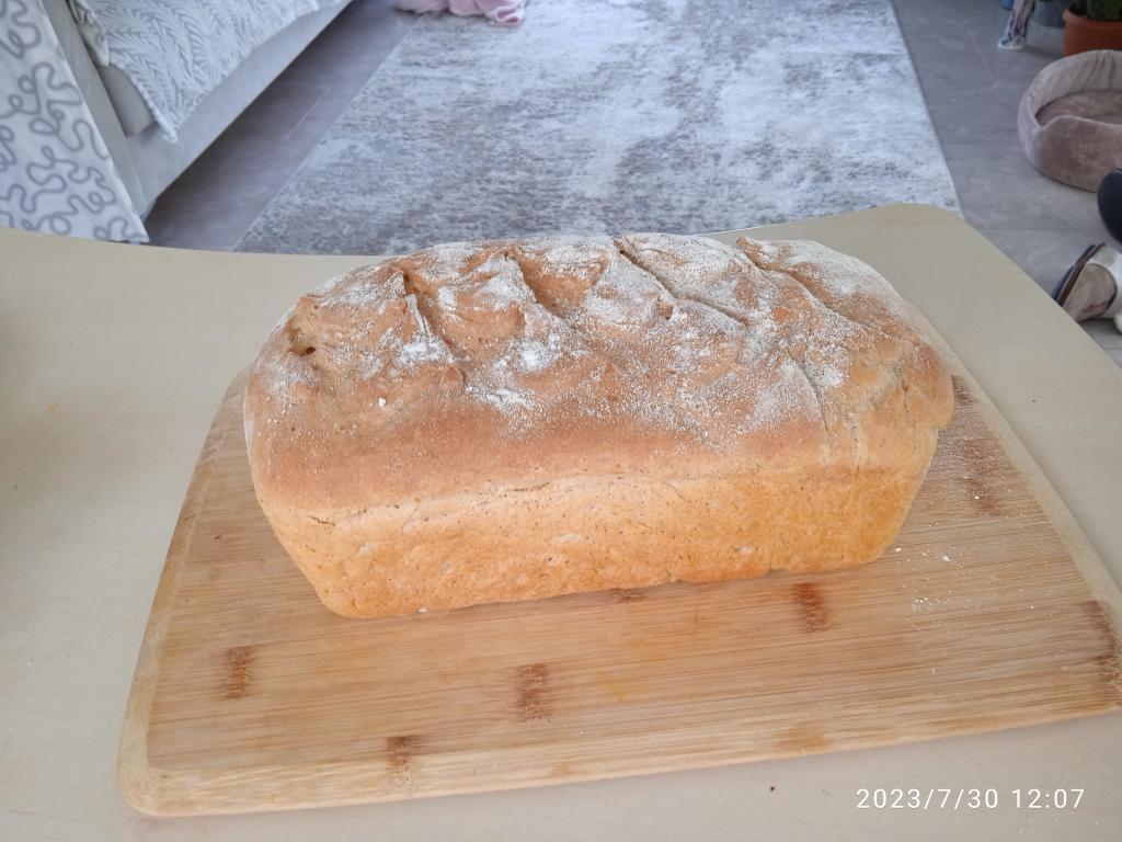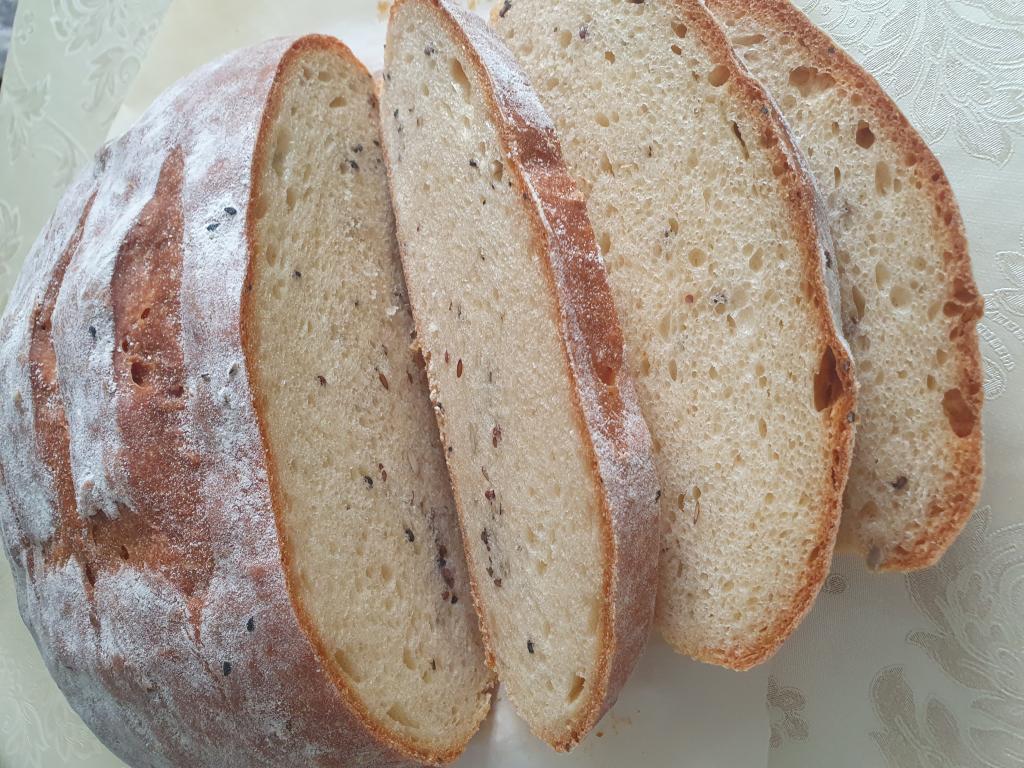 Достать хлеб из духовки, полностью остудить и можно нарезать. Хлеб на ряженке получается очень пышным, красивым и вкусным.