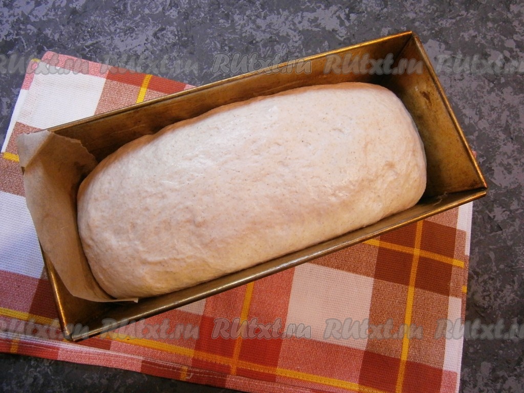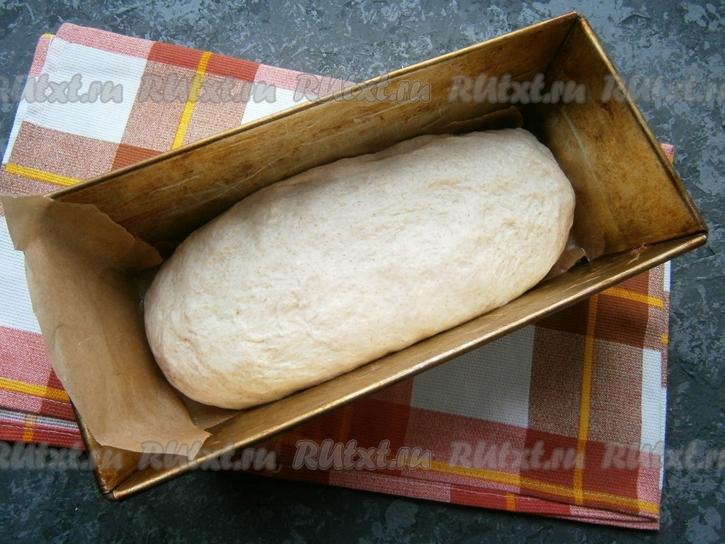Прикрыть форму с тестом пленкой и оставить в тепле на 1-3 часа (продолжительность зависит от вашей закваски), за это время тесто должно хорошо расстояться и подняться.