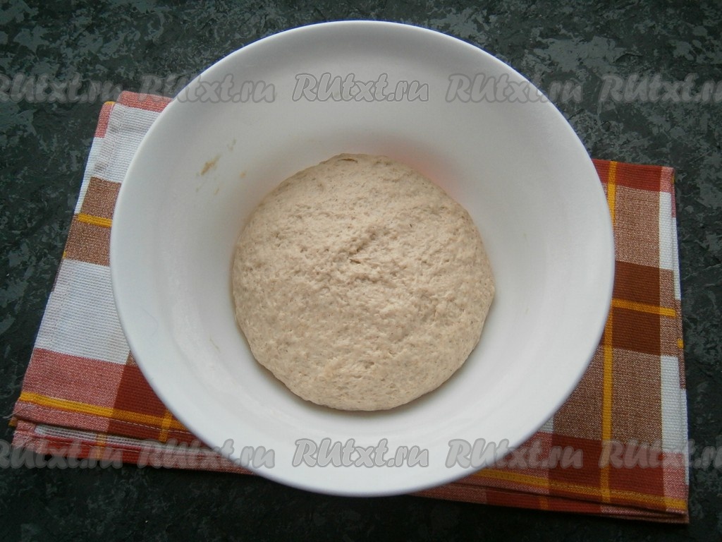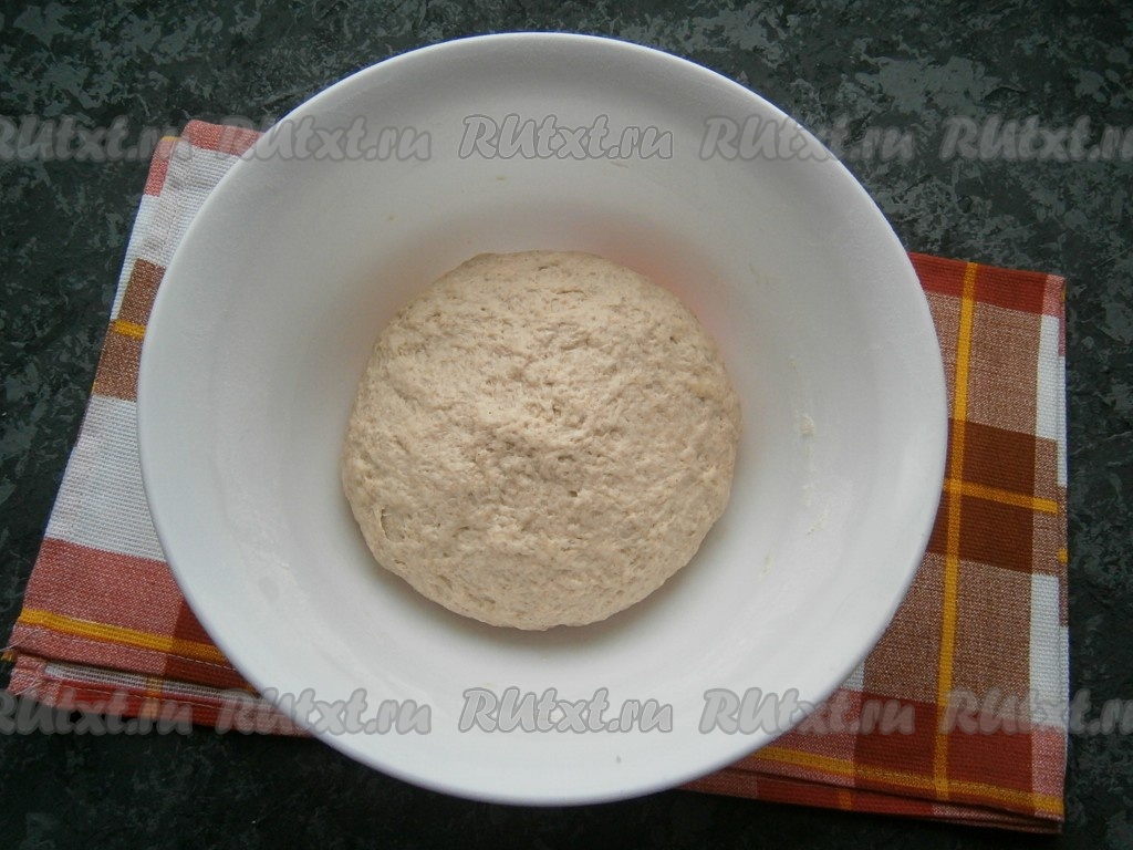 Оставить тесто в теплом месте на 1-1,5 часа. Оно должно увеличиться в 1,5-2 раза (всё зависит от силы вашей закваски).
