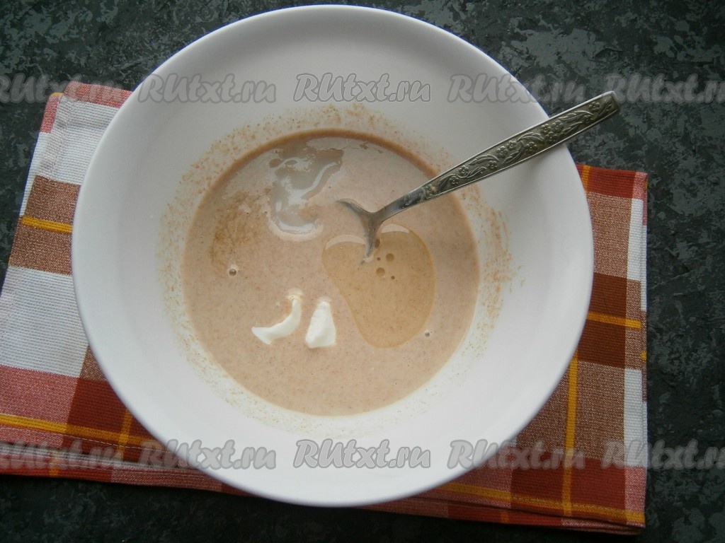 Хорошенько перемешать до однородности. Всыпать соль, сахар, добавить сметану и растительное масло.