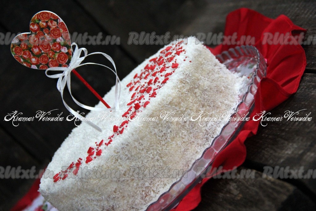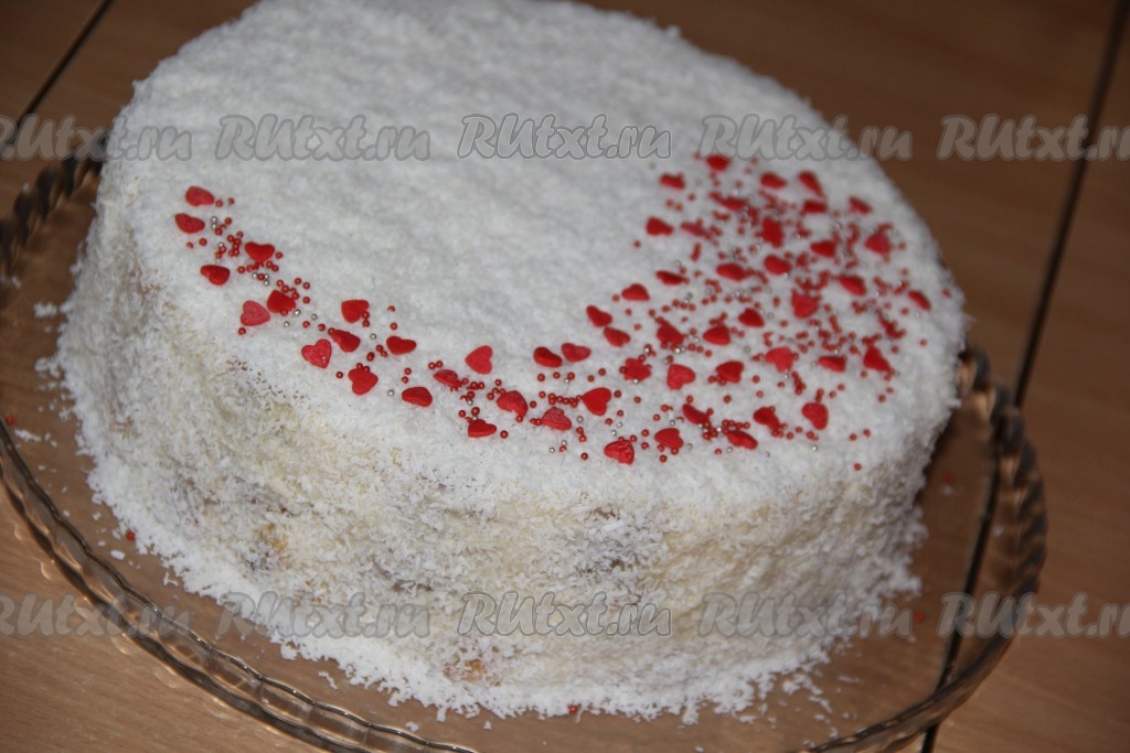Украсить торт по желанию. Я просто покрыла торт кокосовой стружкой и кондитерской посыпкой (можно посыпать тёртым шоколадом).