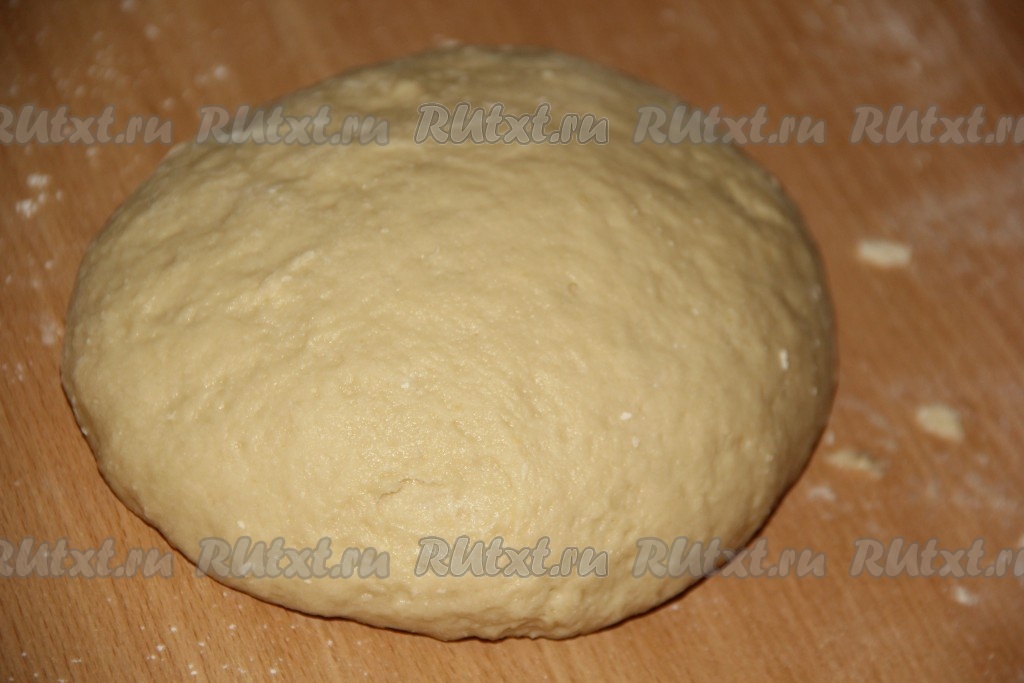 Подсыпая оставшуюся муку, хорошо вымесить тесто до гладкого и эластичного состояния. Поместить тесто в пакет и убрать в холодильник на 30 минут.