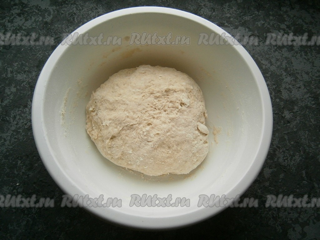 А после того как тесто начнёт собираться в ком, продолжать замешивать его руками. Добавляя понемногу муку и каждый раз полностью вмешивая её, учитывайте, что тесто должно получиться плотным, не липнущим к рукам.