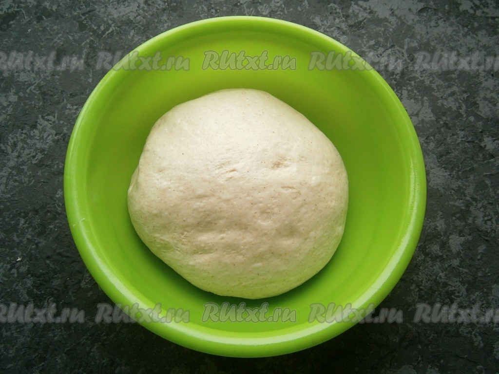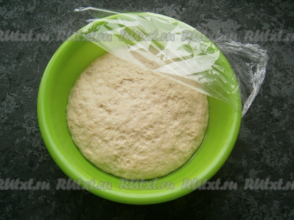 Чистую миску смазать немного растительным маслом и поместить в неё тесто, накрыть плёнкой и оставить в тёплом месте на 1,5-2 часа. Тесто должно увеличиться, как минимум, вдвое.