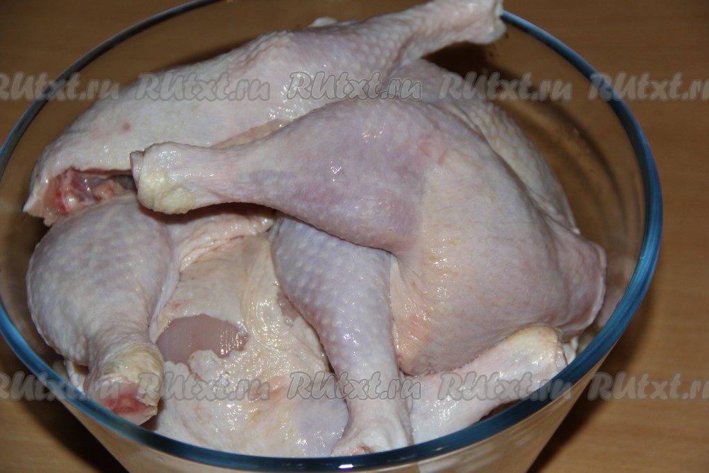 Куриные окорочка хорошо промыть под водой и обсушить бумажными полотенцами.