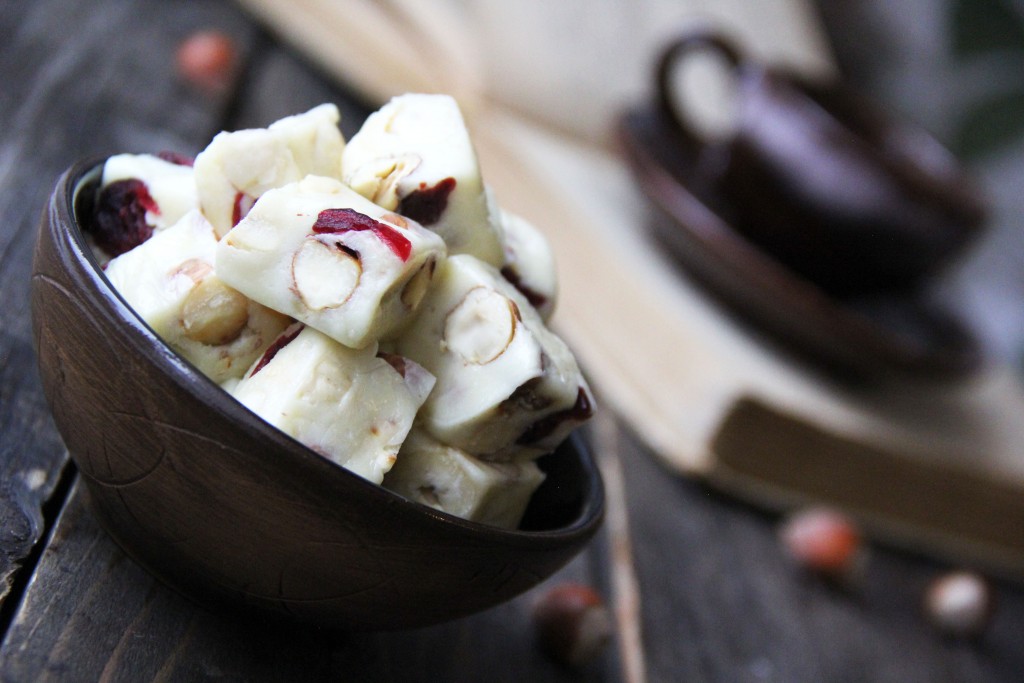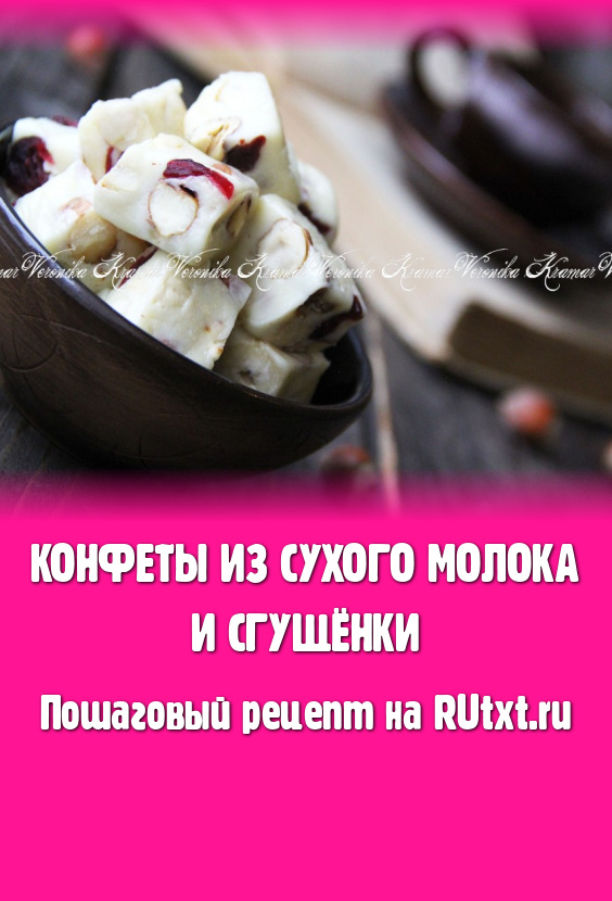 Предлагаю в домашних условиях приготовить восхитительно вкусные конфеты из сухого молока и сгущёнки. Конфеты получаются очень нежными, в меру сладкими, по вкусу напоминают нугу. В качестве начинки для конфет можно использовать различные сухофрукты и орехи (я добавила фундук и вяленую клюкву). Приготовьте конфеты по этому простому рецепту и, я уверена, они покорят вас своим вкусом!