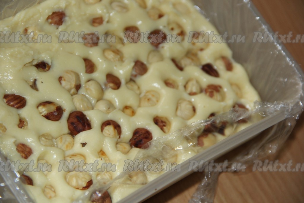Затем поместить орехи в массу, утапливая по одному ядрышку.